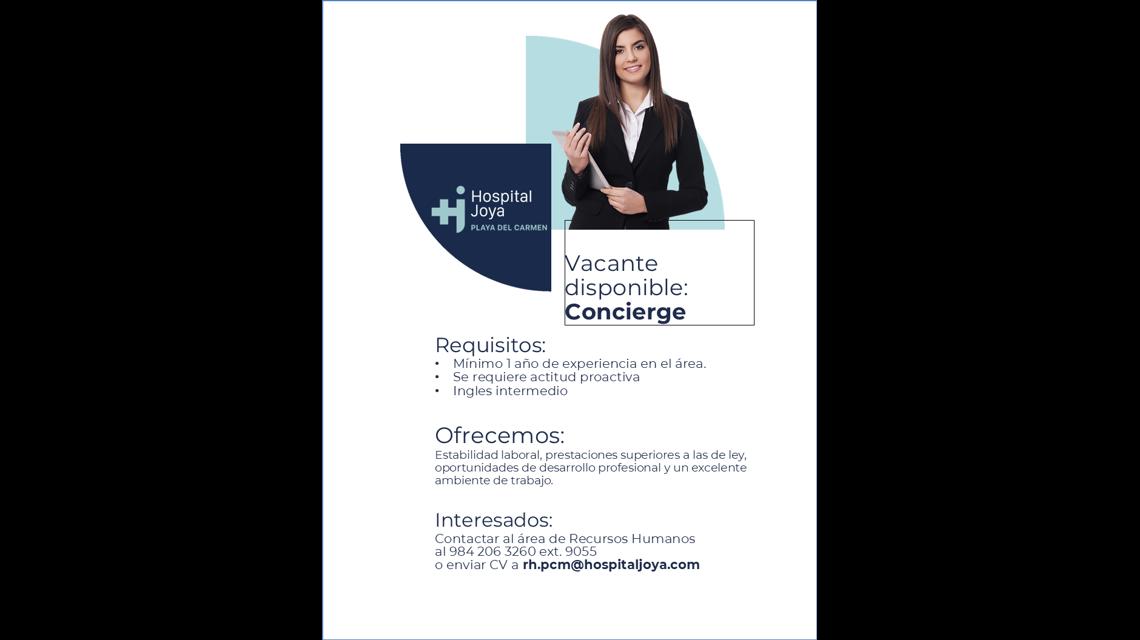 Oportunidad: Únete al equipo del Hospital Joya como Concierge. Este rol es fundamental para asegurar la comodidad y el bienestar de nuestros pacientes y visitantes.
